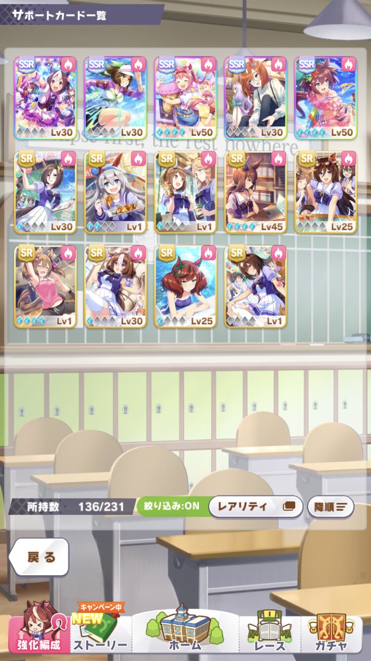 ストーリーってちゃんとボイス再生して進めると2時間はかかるし、いくら強いと言っても完凸前提の話だからね>根性スペシャルウィーク