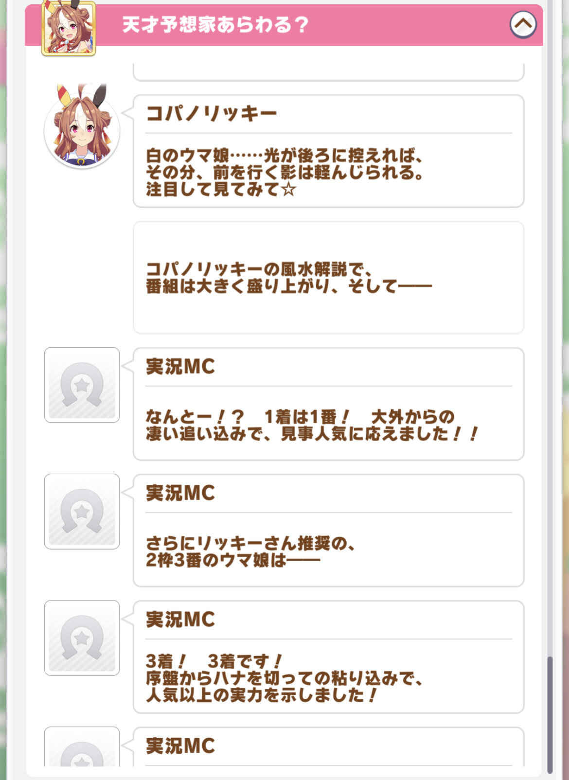 「コパノリッキーが実装されたら『リッキーラッキー大勝利!』って言いそう」と思ってた