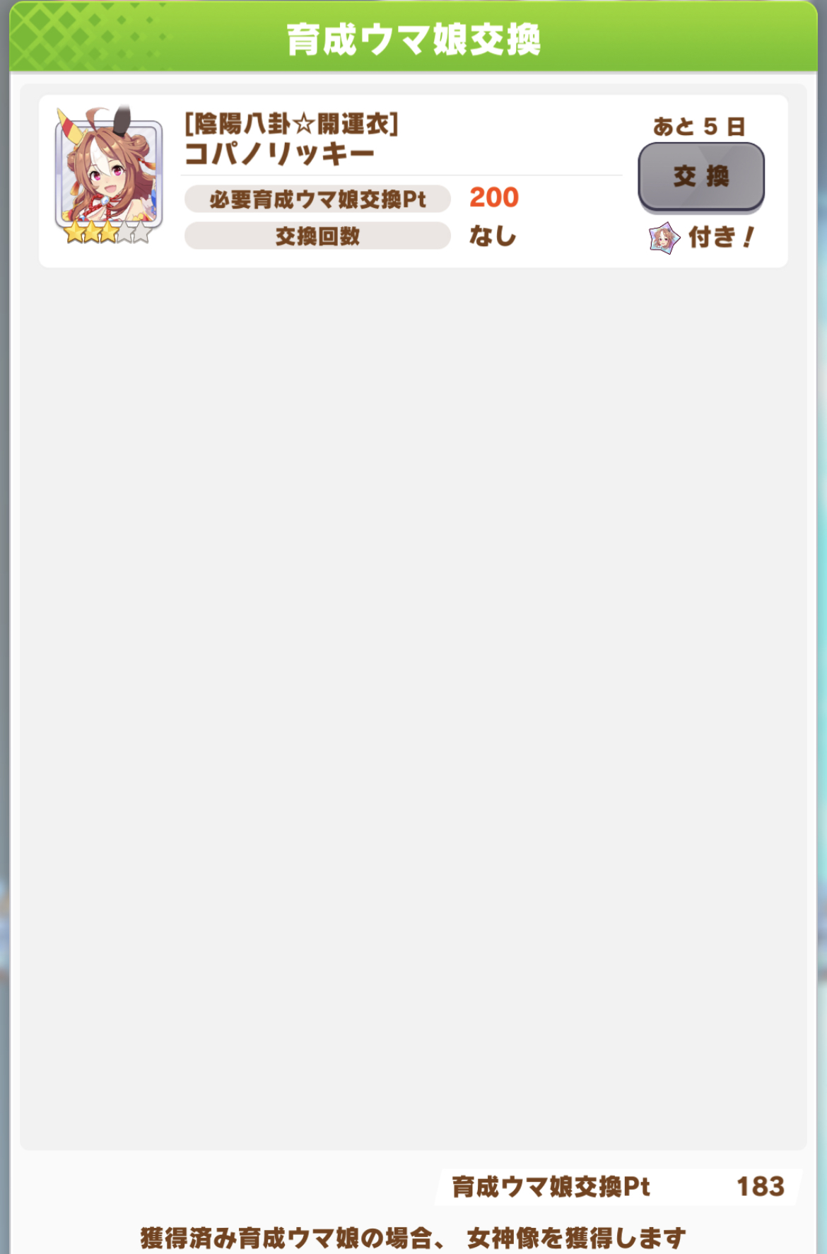 あっ、夏ドーベル忘れてた……退勤電車の中でもういいよ……って項垂れててスクショ忘れてた……