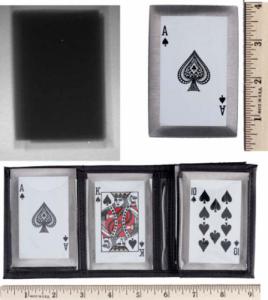 それが……事件のあったカジノの壁にコイツが刺さったと思しき跡があったらしく……その……