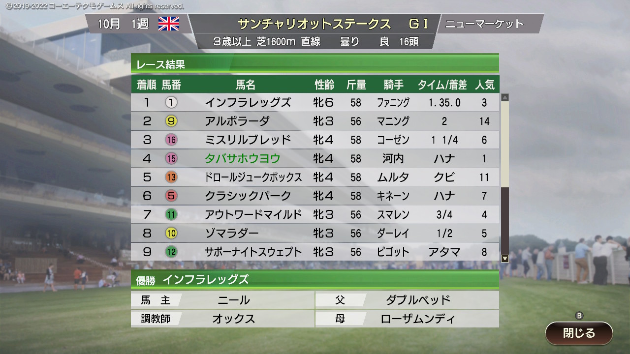 安価でウイニングポスト9 2021 3周目part1|あにまん掲示板安価とダイスでウイニングポストやります今周回での目標は以下の通り・ダンシングブレーヴ系の確立・シービークロス系の確立・中央地方G1全制覇・凱旋門賞、BCクラシック、ドバイワールドカップの制覇・6カ国の…bbs.animanch.com前スレ