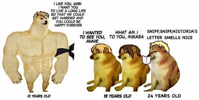 巨人体のカッコ良さが中身の人間性に影響されるなら巨人体はイケメンだけど中身は女々しいエレンライナーと中身聖女なのに巨人体ブスなユミルはなんなんだ・・・