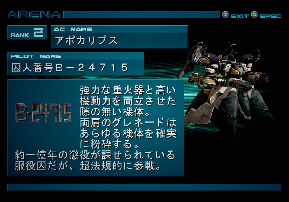 実力は間違いなくオッツダルヴァに並ぶかそれ以上なのに政治的配慮で奇しくもアーマード・コアでは強さの象徴である"9"に格下げされてるのスキなんだよね