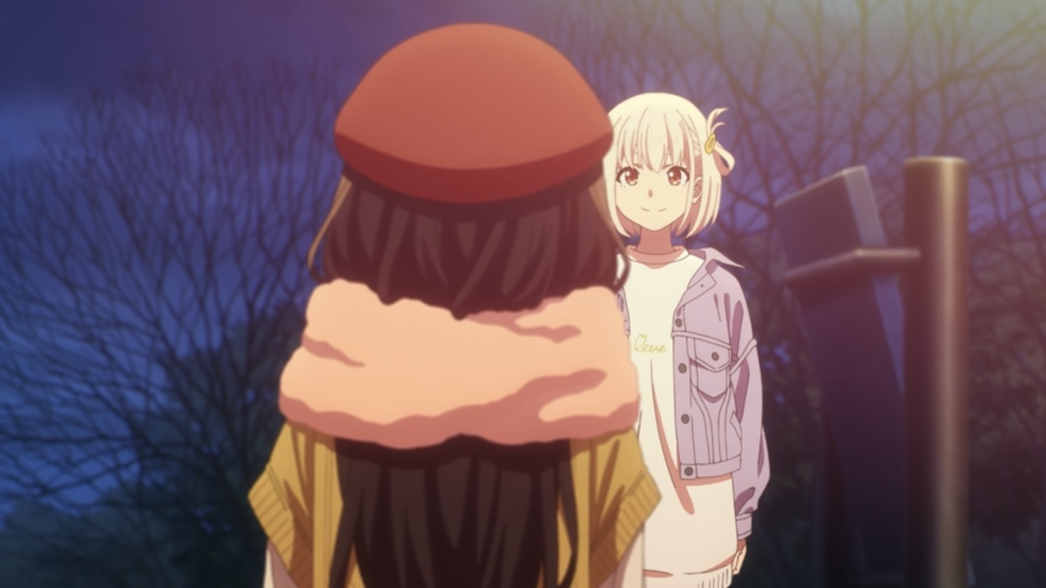 リコリコ9話アイキャッチは救世主からのプレゼントを抱く千束と前に進むことを決意したたきなでした。二人の未来にどうか光が差しますように🙏