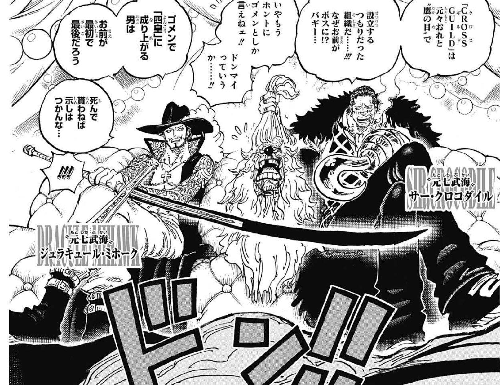 バギーとミホークだけだとそうでもないのにクロコダイルが入った瞬間なんかギャルとか女子校感増すんだよな