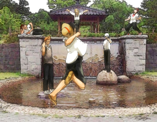 毎回ポニーテールにしたりバンドで前髪かき上げたり髪型が変わるお洒落なボニーとか、ビルの横によくついてる鉄の非常階段上がろうとしたら登る途中で明らかにヤバイ音を立てて珍しく焦ってるウルージと何故かゼスチャーだけでゆっくり下がれ!と応援してくるルフィとボニーとか、秘密基地に到着して先にウルージが待ってた時にルフィの目が星が散ったみたいに一気に光り輝く瞬間とか